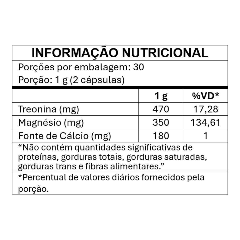 Magnésio L-Treonato 60 cápsulas de 500mg – Suplemento Alimentar Capsulado